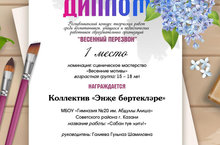 Театральный коллектив гимназии "Энҗе бөртекләре" под руководством Галеевой Гульназ Шамилевны занял 1 место в республиканском творческом конкурсе "Весенний перезвон".