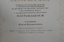 Татар мәктәпләрендә укучы татар балалары арасында татар әдәбиятыннан узган республика олимпиадасында 8 нче А сыйныфы укучысы Сәгъдиева Язилә призер дип табылды.( Укытучысы - Галеева Гөлназ Шамил кызы). Котлыйбыз һәм яңадан-яңа уңышлар телибез!