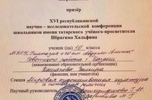 Быел Туган телләр һәм халыклар дуслыгы елына багышланган XVI И.Хәлфин исемендәге республика конференциясендә катнашып призер булган укучыларыбызны: Кузьмина Милананы,8 б кл. (укытучысы-Хафизова Л.А) һәм Кашапова Зәмирәне ,10 кл.(укытучысы- Фәхретдинова Г.М һәм Зарипова М.Г.) чын күңелдән котлыйбыз!