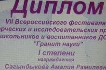 Укучылар арасында узган VII Бөтенроссия" Фән граниты - Гранит науки" иҗади бәйгесендә 5 А сыйныфы укучылары Сагындыкова Амалия, Хакимова Алинә,Галиев Айназ, Хабибуллин Вилдан ( укытучылары- Галиева Гөлназ Шамил кызы) катнашып, I урын яуладылар. Котлыйбыз!