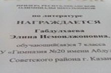 Гимназиянең 5 "Б" сыйныфы укучысы Тимербаев Адел төрле чараларда актив катнаша. Әле яңа гына республика "Йолдызлык" фестивалендә катнашып, II нче урынга лаек булды. Аделне барлык коллектив исеменнән котлыйбыз һәм яңа үрләр яулавын телибез! Бу җиңүдә Аделнең җитәкчесенә Г.Т.Урманчеевага да рәхмәт белдерәбез!