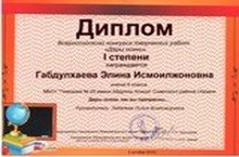 Поздравляем победителя Всероссийского конкурса творческих работ « Дары осени» Габдулхаеву Элину, ученицу 6 класса