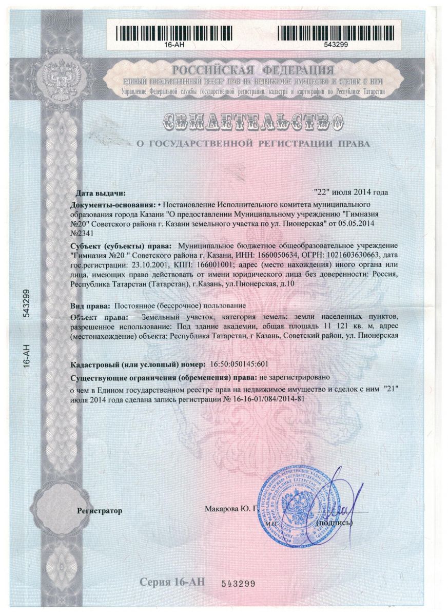 Короткое название: МБОУ "Гимназия №20 имени Абдуллы Алиша"