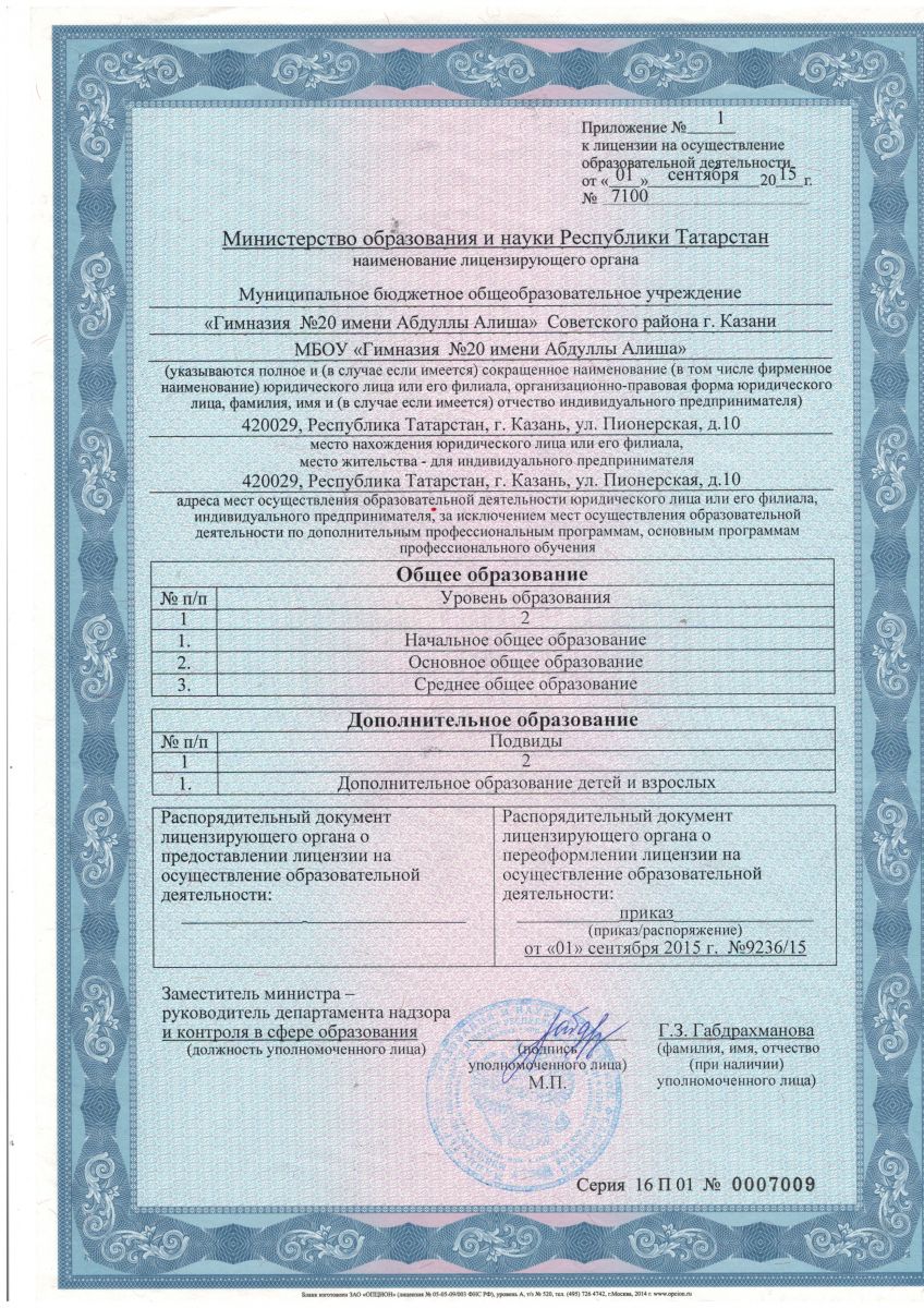 Короткое название: МБОУ "Гимназия №20 имени Абдуллы Алиша"