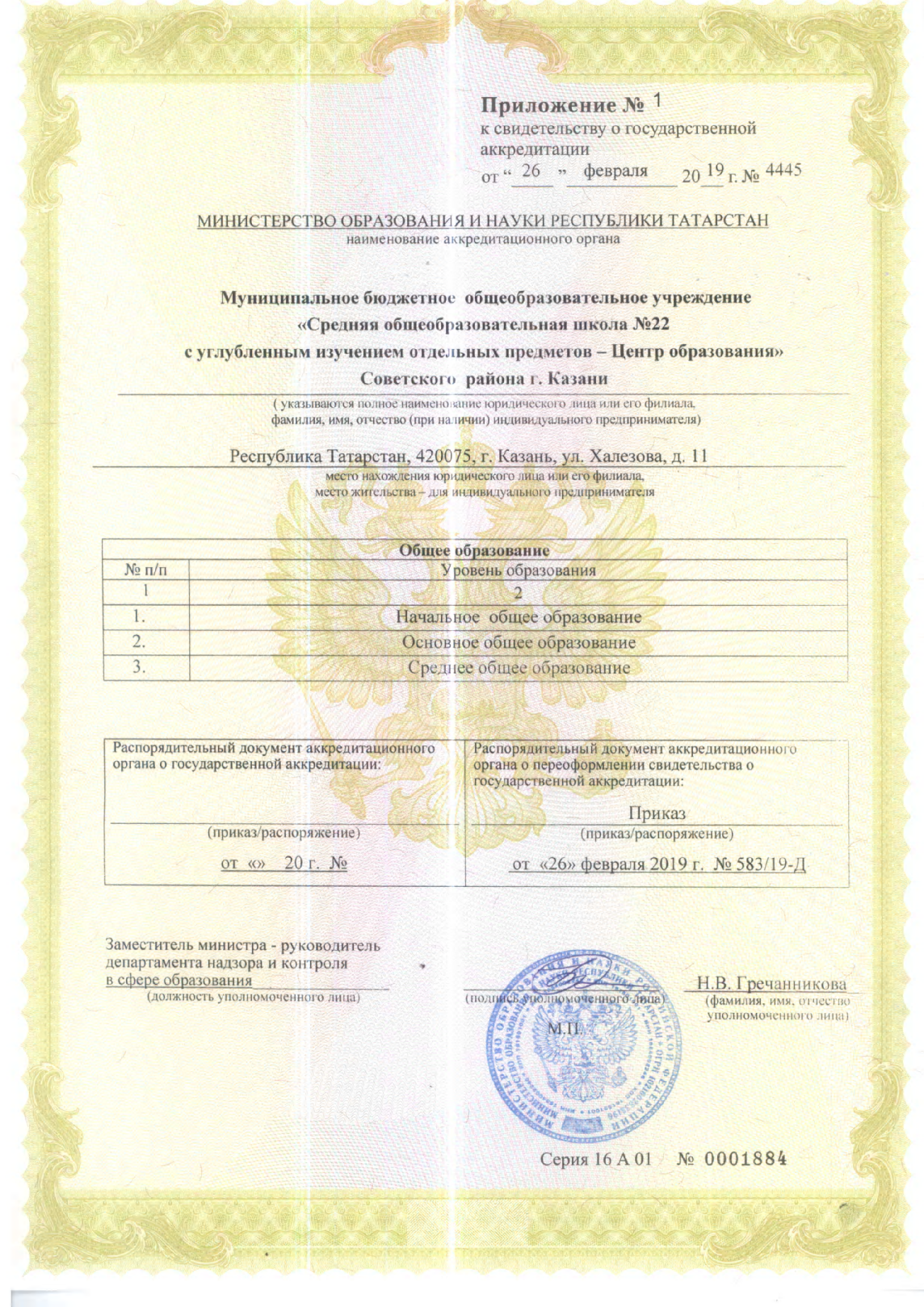 МБОУ «Средняя общеобразовательная школа №22 с углубленным изучением отдельных предметов - Центр образования» Советского района г. Казани