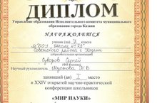 Суворов Сергей, ученик 7Б класса, – победитель XXIV открытой научно-практической конференции школьников «Мир науки». 13.03.2020
