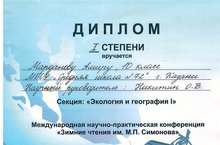 В Казанском национальном техническом университете имени А.Н. Туполева (КАИ) состоялась международная научно-практическая конференция «Зимние чтения имени М.П. Симонова». Ученик 10Б класса Марданов Амир выступил с исследовательской работой на секции «Экология и география» и получил диплом I степени. Наши поздравления Амиру с очередным успешным выступлением!