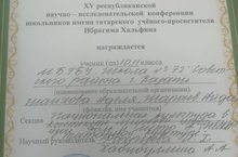 25нче гыйнварда Казан шәһәренең 14нче гимназиясендә үткәрелгән Ибрагим Хәлфин исемендәге XV Республика фәнни-гамәли конференциясенең “Национальная культура в контексте мировых цивилизаций” секциясендә мәктәбебезнең 10нчы сыйныф укучысы Шараев Айдар һәм 11нче сыйныф укучысы Шаихова Адилә (укытучы Фахриева Л.Х.) 3нче урын яуладылар! Котлыйбыз һәм киләчәктә дә укучыларыбызга зур уңышлар телибез!