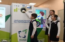 В 20 школах Казани, в том числе и нашей, запущен пилотный для страны проект по установке фандоматов. Эти аппараты рассчитаны на то, чтобы принимать пластиковые бутылки и алюминиевые банки из-под напитков – их следует по одной помещать в специальное окно. Электронное табло сигнализирует о количестве принятой тары. На аппарате установлены датчики, которые по штрих-коду на таре определяют материал – пластик или алюминий. После этого бутылка или банка отправляется в специальную секцию. Чтобы банки и бутылки занимали меньше места, они проходят через специальный сминатель, который уменьшает их размер в два раза. Один фандомат вмещает 800 пластиковых бутылок и 400 алюминиевых банок объемом 0,5 литра, то есть один цикл дает порядка 25 кг сырья. В среднем фандомат должен будет заполняться в течение 3-5 дней.
