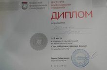 Поздравляем Марданову Назиру с получением диплома I степени, Амир - с получением диплома II степени. Желаем дальнейших успехов!
