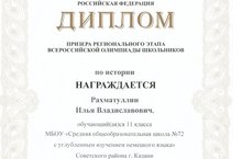Поздравляем Рахматуллина Илью с успешным выступлением на олимпиаде по истории! 05.02.2018