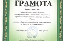 Хамидуллина Алсу – район олимпиадасында җиңүчече. 17.02.2015