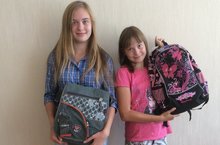 21 августа в рамках акции "Помоги собраться в школу" были вручены портфели Гудиной Арине, ученице 9В класса, и Гудиной Полине, ученице 4Б класса.