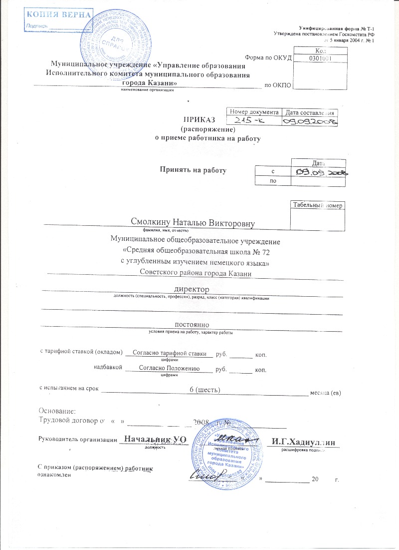 Приказ на назначение директора