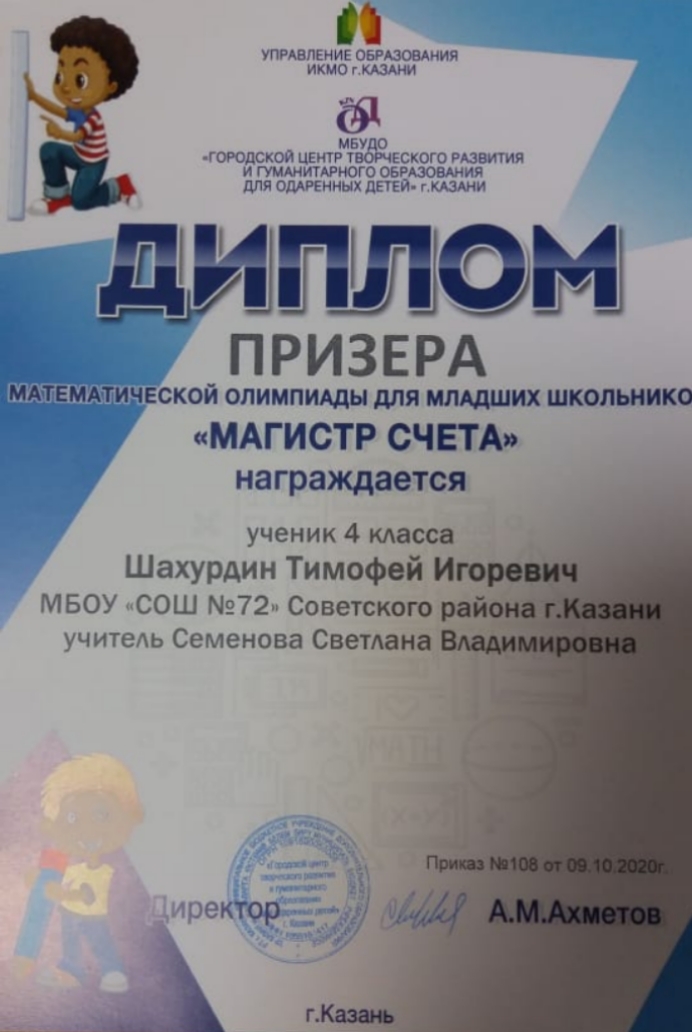 Шахурдиным Тимофеем (номинация "Магистр счета").