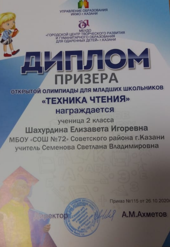 Шахурдиной Елизаветой (номинация "Техника чтения");