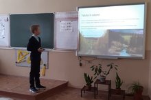День самоуправления - защита проектов. Ученики инженерного класса Новиков Макар и Пашеев Марсель защищают проект на английском языке.