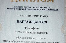 Поздравляем Тимофеева Семена с блистательным выступлением на региональном этапе ВОШ по английскому языку. педагог Гульназ Ринатовна , директор школы.