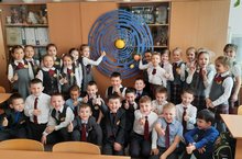 Сегодня в школе "День космонавтики" Для учащиеся 7-8 классов был организован просмотр научно - популярных и документальных фильмов о космосе, первом запуске космического корабля. Учащиеся 1а класса презентовали макет "Галактика"
