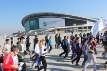 На площадке перед Kazan-Arena развернулся настоящий семейный праздник. В ожидании стартов участников развлекали красочными выступлениями творческие танцевальные и вокальные коллективы города.