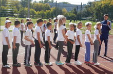 В рамках " Дня знаний " на новой спортивной баскетбольной площадке состоялся спортивный праздник, на котором присутствовал депетат Государственной Думы 5 созыва Мухаметшин А.А., а учащиеся 4 - х классов соревновались в ловкости и снаровке .
