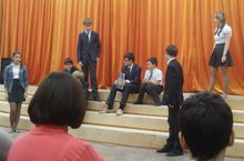 день учителя в школе. Учащиеся "Театральной студии" поздравляли учителей и желали творческих успехов!!! 03.10.2014