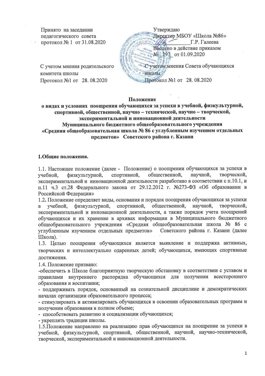 - Положение о видах и условиях поощерения обучающихся за успехи в учебной, физкультурной,спортивной, общественной , научно-технической, научно-творческой, экспериментальной и инновационной деятельности (электронный документ), копия