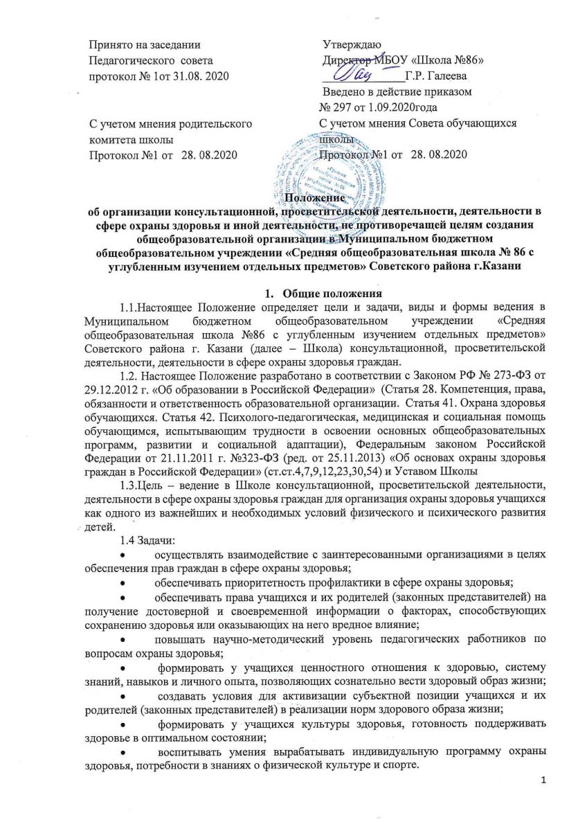 - Положение об организации консультационной, просветительской деятельности, деятельности в сфере охраны здоровья и иной деятельности, не противоречащей целям создания общеобразовательной организации (электронный документ), копия