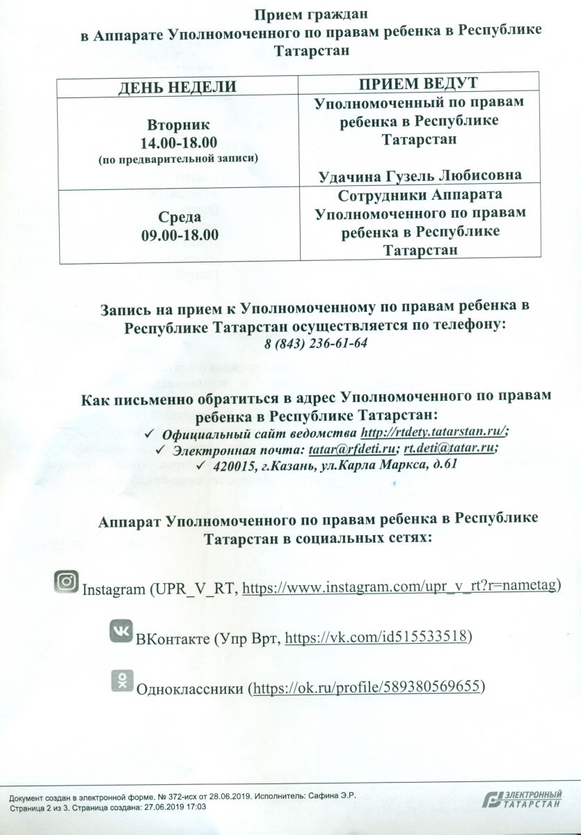 Прием граждан в Аппарате Уполномоченного по правам ребенка в РТ