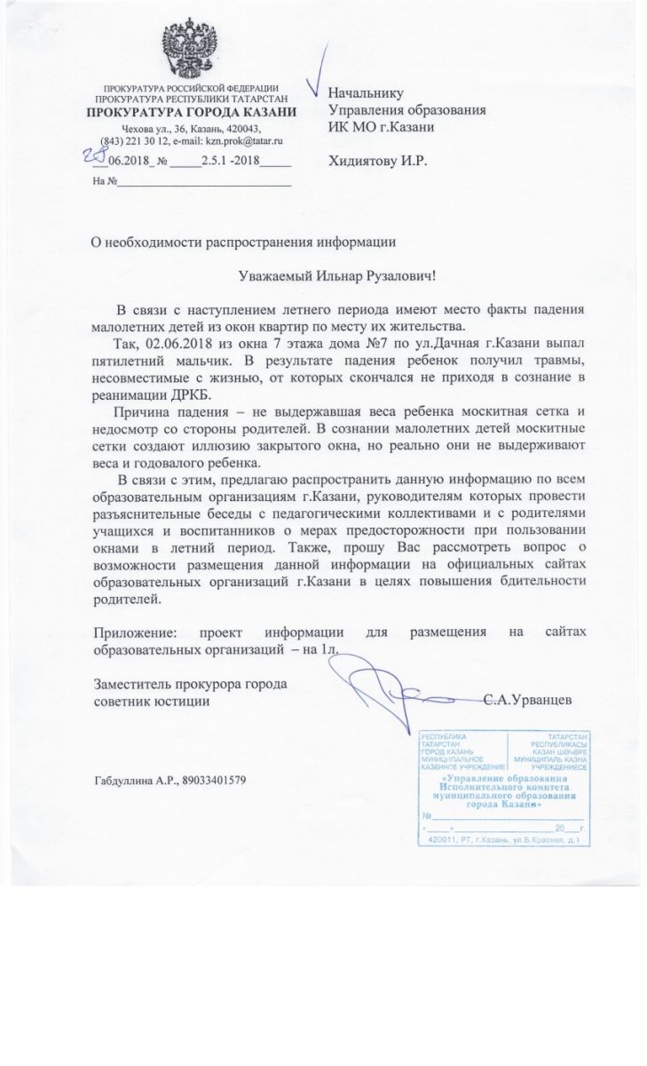 Информационное письмо прокуратуры города Казани