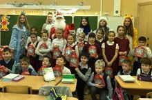 ****Дед Мороз и Снегурочка поздравили всех ребят начальной школы с Новым годом и вручили новогодние подарочки всем девочкам и мальчикам.