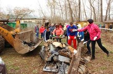 1. 23 апреля в Казани, в рамках объявленного двухмесячника по санитарной очистке и благоустройству города состоялся общегородской субботник.Сотрудники аппарата Администрации Советского района вместе с учащимися гимназии №93 благоустраивали зеленую зону рядом с учебным заведением по ул.Красной Позиции.