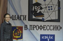 1.Ученица 7А класса Тукова Ольга заняла 2 место в городской научно-практической конференции "Шаги в профессию" в номинации "Физика в моей будущей профессии", которая прошла 10 декабря в школе №42 Приволжского района. На секции физики она одна была из 7 класса, остальные из 9, 10 и 11 классов. (учитель Арсланова Римма Габдулхаковна)
