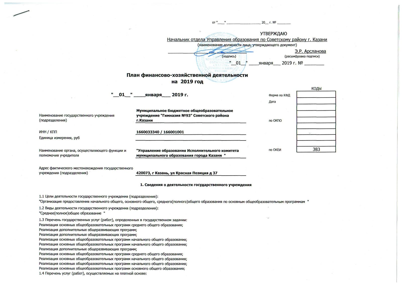 План финансово-хозяйственной деятельности на 2019 год стр1 стр 2 стр3 стр4 стр5