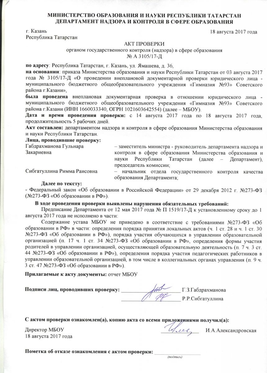 Акт проверки органом государственного контроля (надзора) в сфере образования № А 3105/17-Д/upload/storage/org2346/files/акт.jpg