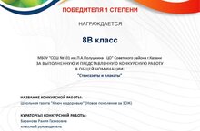 Поздраляем коллектив 8в класса с 1 местом в Первом Всероссийском конкурсе "Таланты России" в номинации "Стенгазеты и плакаты"