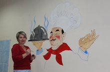 В рамках благотворительной акции «Неделя добра» помощь школе приобрела разные формы. Родители ученика 9к класса решили сделать подарок школе. Мама Марина Геннадьевна решила разрисовать стены столовой, а папа Фёдор Алексеевич- отремонтировать проводку в будущем медицинском кабинете. Марина Геннадьевна закончила свою работу! Спасибо!