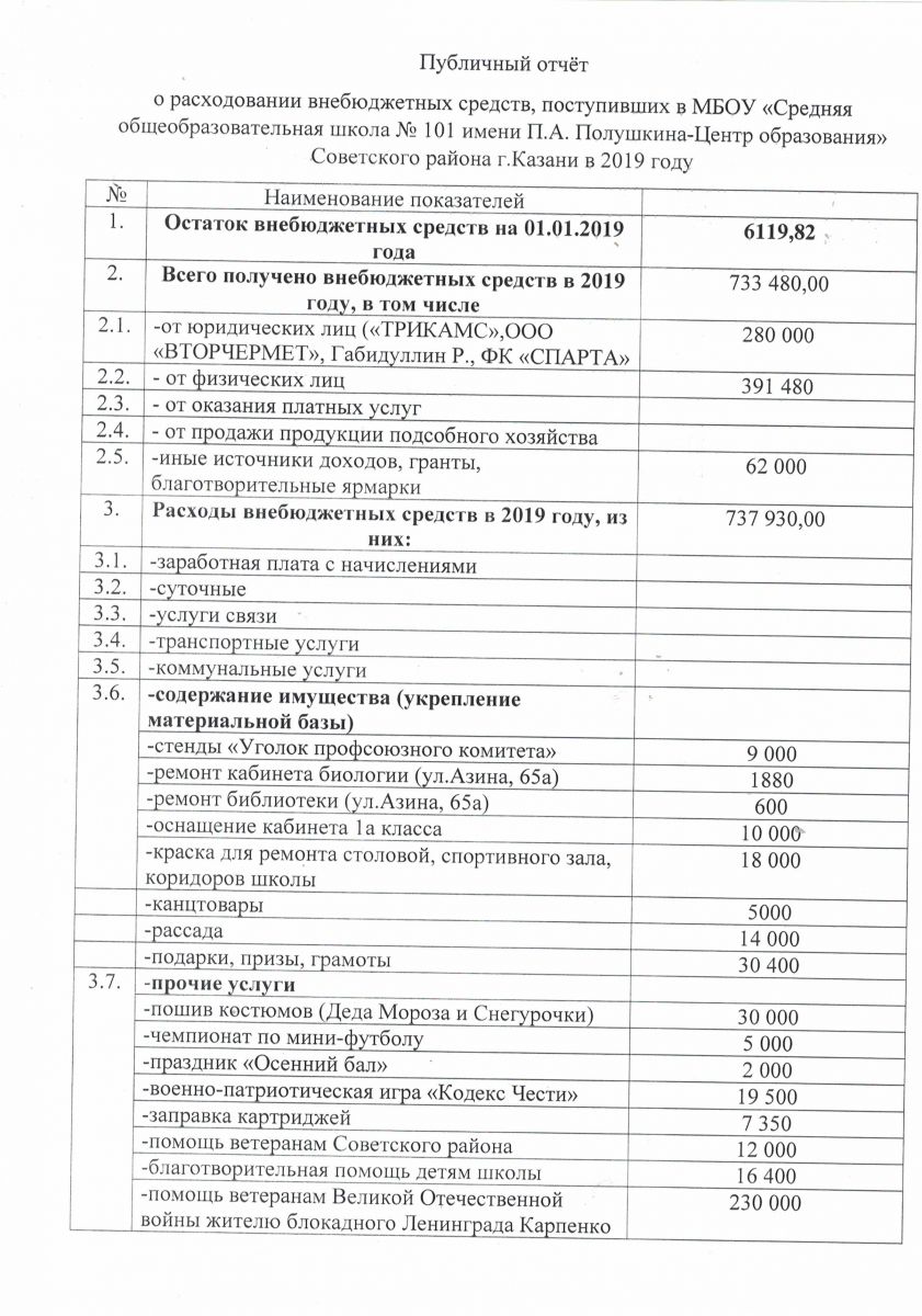 Отчет о расходовании внебюджетных средств в 2019 году