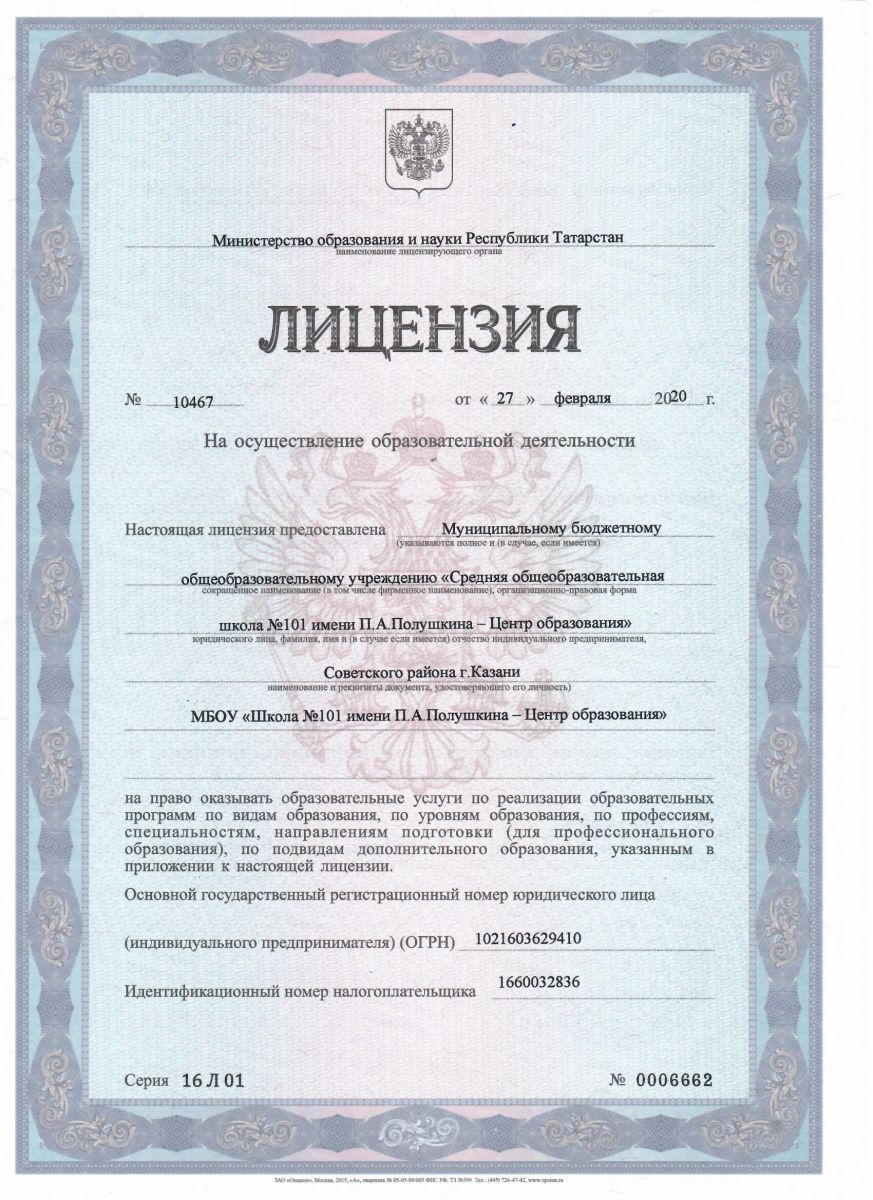 Муниципальное бюджетное общеобразовательное учреждение «Средняя общеобразовательная школа №101 имени П.А. Полушкина - Центр образования» Советского района г. Казани