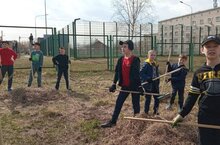 Организовали субботник на территории школы.Улучшилили экологическую обстановку во дворе.Это добрая традиция в котором участвуют все.