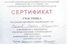 Сегодня наши школьники 9 класса Валеев Марат и Шаталов Александр приняли участие в открытом городском турнире по робототехнике в Инженерном лицее КНИТУ-КАИ для одаренных детей. Желаем Вам новых достижений и успехов! Молодцы!