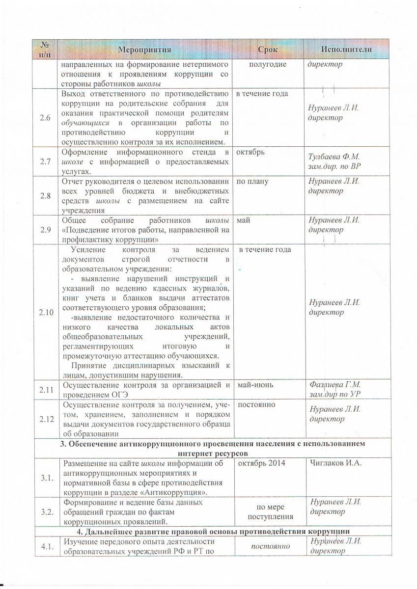 План мероприятий