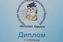 На городской конференции "Интеллект. Карьера" Яковлев Ярослав, ученик 7 класса, на секции точных наук удостоился Диплома I степени (Научный руководитель - Баскова М.А.) Поздравляем!