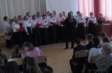Сегодня наши учащиеся встречали в стенах лицея Народный хор ветеранов Красная гвоздика". Концерт был посвящен прошедшему празднику 23 февраля и наступающему празднику 8 марта .