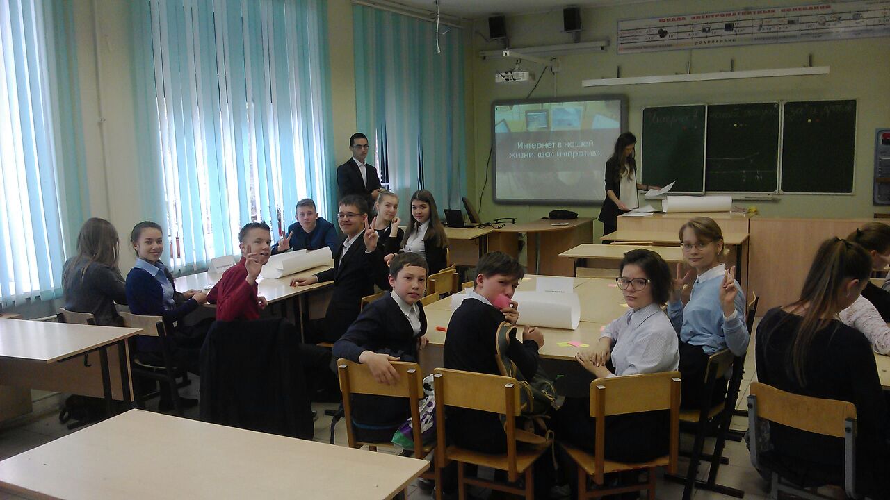 Сегодня у 8 "Б" класса прошла интересная игра "Интернет- за или против"