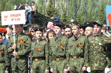 Сегодня наши лицеисты приняли участие в городском параде Победы, который открывал заместитель директора по ОБЖ лицея №110 Хабибрахманов Р.Я.