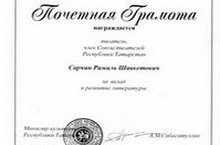 Поздравляем Сарчина Рамиля Шавкетовича с присуждением Почетной грамоты Министерства культуры Республики Татарстан за вклад, внесенный в развитие литературы.