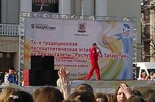 Традиционная Первомайская легкоатлетическая эстафета на призы общественно-политической газеты «Республика Татарстан» прошла сегодня в Казани. Нынешняя эстафета стала уже 74-й по счету и посвящена она 70-летию Победы в Великой Отечественной войне.От нашего лицея в эстафете приняла участие спортивная семья Абдуллиных. Поболеть за спортивную семью пришли 7а, 7в, 8в, 9а,9б,11 а классы совместно с классными руководителями.
