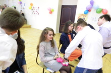 Очень весело, а главное смешно прошел конкурс "Макияж месяца", на котором мальчики в варежках пытались сделать макияж своим помощницам.