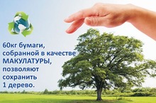 Макулатура в количестве 60 килограммов спасает от вырубки одно взрослое дерево.